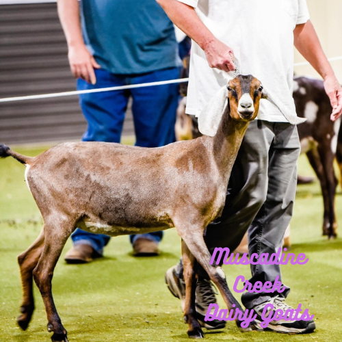 Pricing: Doelings start at $600 and bucklings start at $500 from first fresheners. Prices vary on individual kids on how who their dams and sires are and show records, official milk records, Linear appraisal scores, and more! If you are interested in a breeding, please email me or contact me through my facebook (Muscadine Creek Dairy Goats) for more information and specific pricing.
