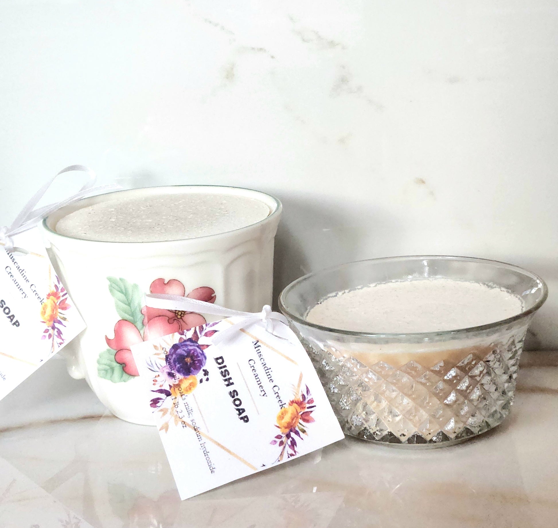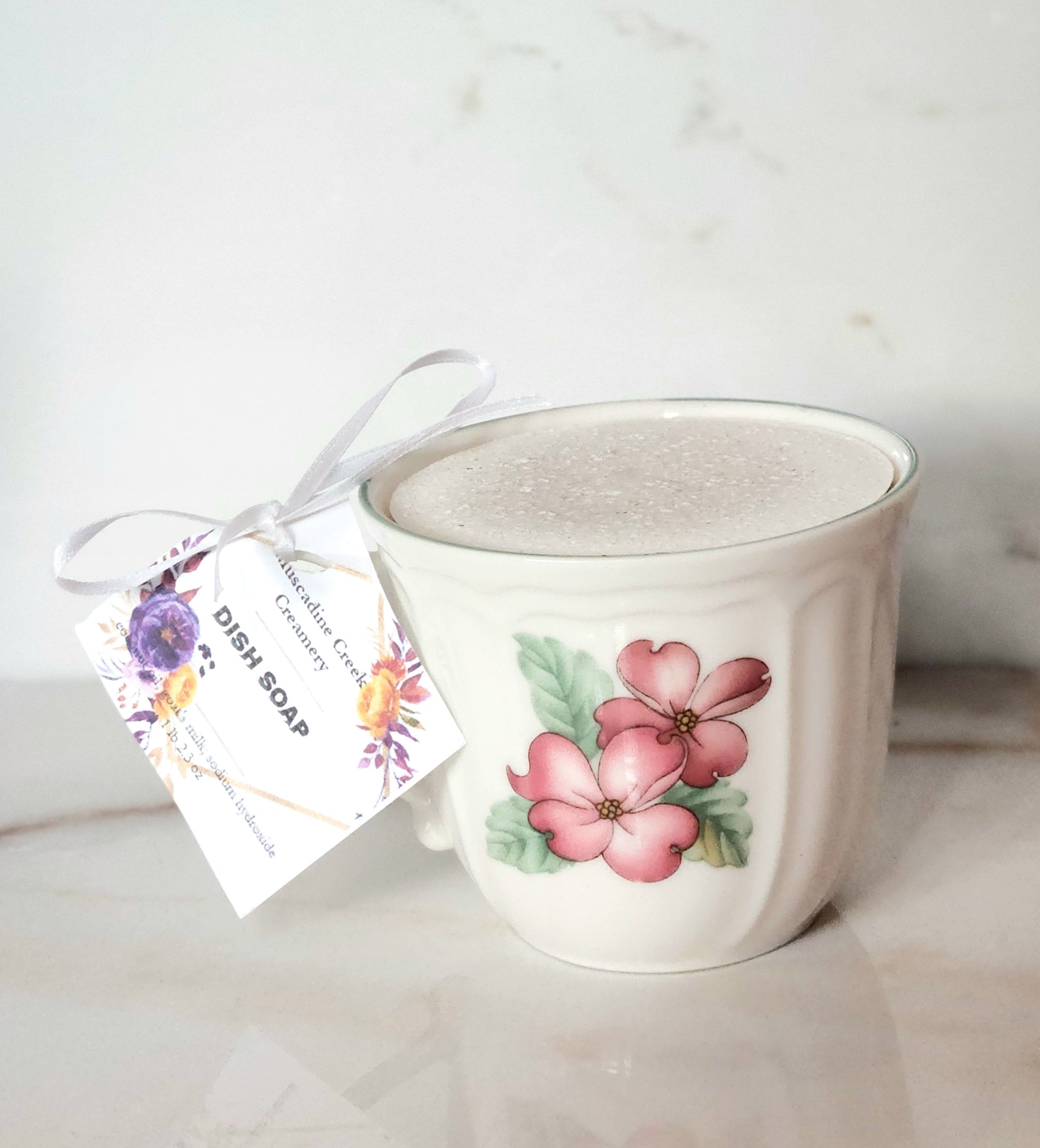 Our solid dish soap is sold in beautiful recycled teacups . Wash the cup and add it to your collection or if you are local I can do refills for you when you are finished with the soap!
