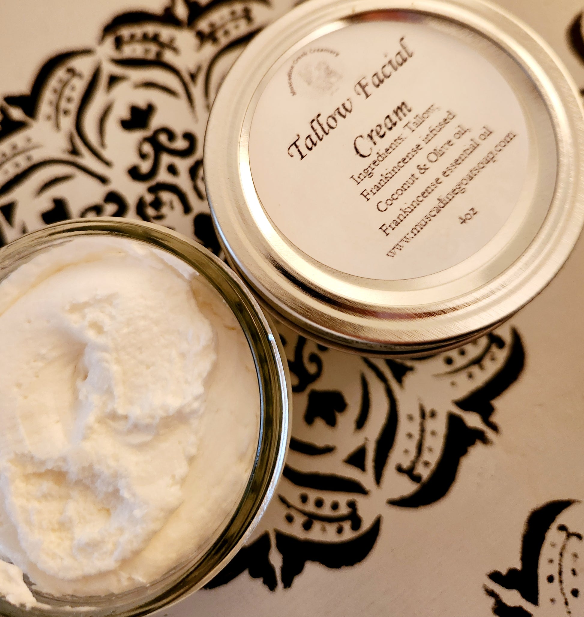 Tallow can lock in moisture more effectively than chemical based products... it is rich in nutrients that is similar to the natural oils that your skin produces. In Latin, Tallow translates to "Sebum", which is the oil produced by your skin's glands. Frankincense has a rejuvenating effect, especially on mature skin.